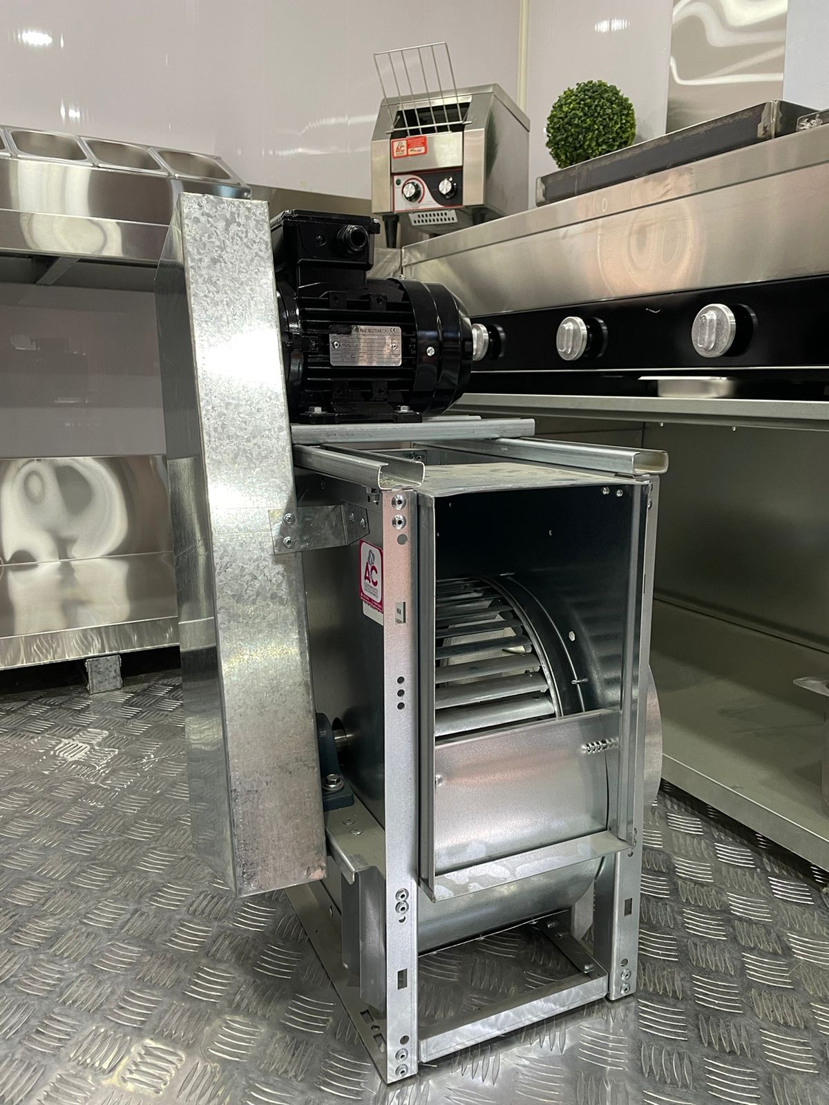 extractores de caudal 3900 m3/h en un diámetro de 12 pulgadas para instalación de campanas de locales comerciales y food trucks.